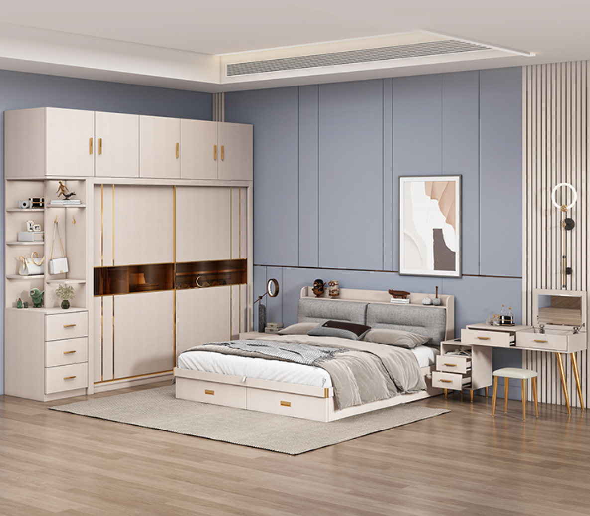 (Wardrobe – Bed – two Bedside – Makeup Vanity)